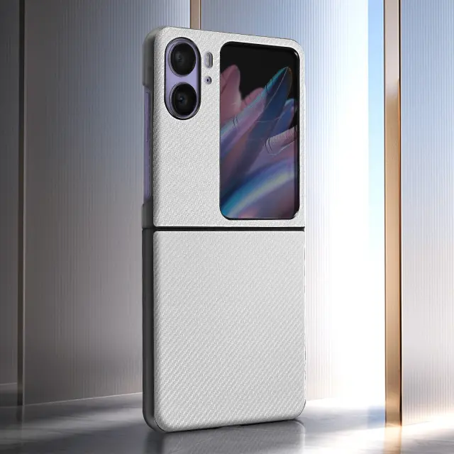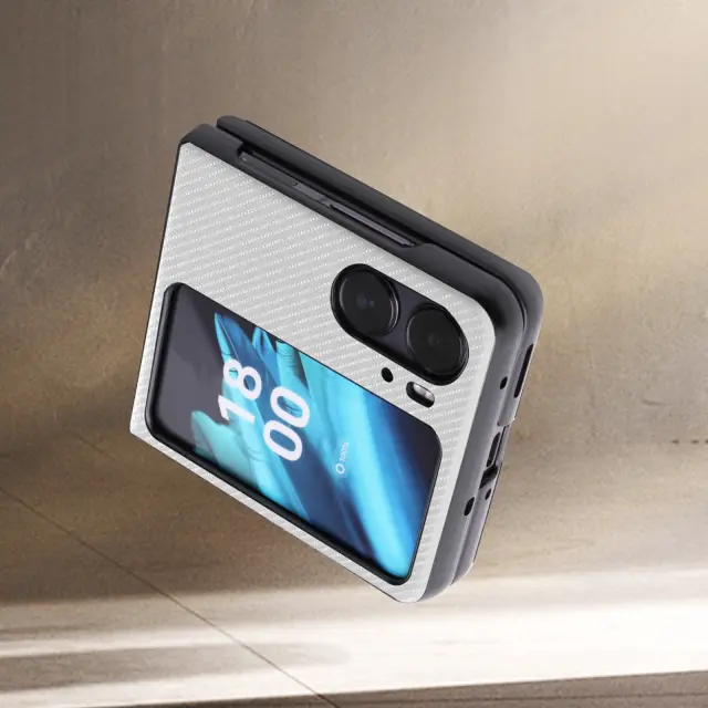 Ovitek, izdelan posebej za vaš Oppo Find N2 Flip. Zaščitite svoj telefon pred vsakodnevnimi praskami. Dizajn, ki združuje karbonski učinek s teksturo brušene kovine za oblikovanje vašega telefona. Nedrseča površina za prijetno in varno rokovanje.
