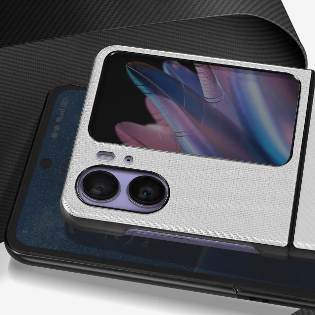 Ovitek za Oppo Find N2 Flip ojacan z mehkim krtacenim silikonom Carbon White