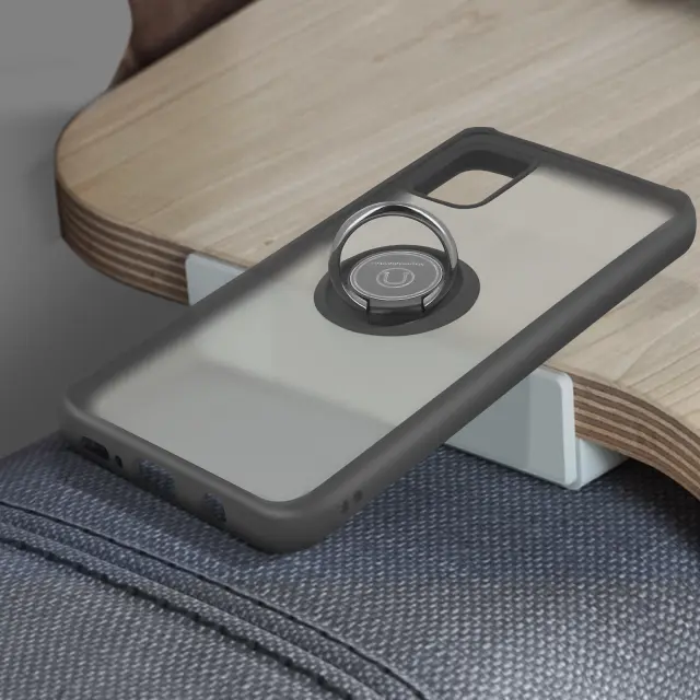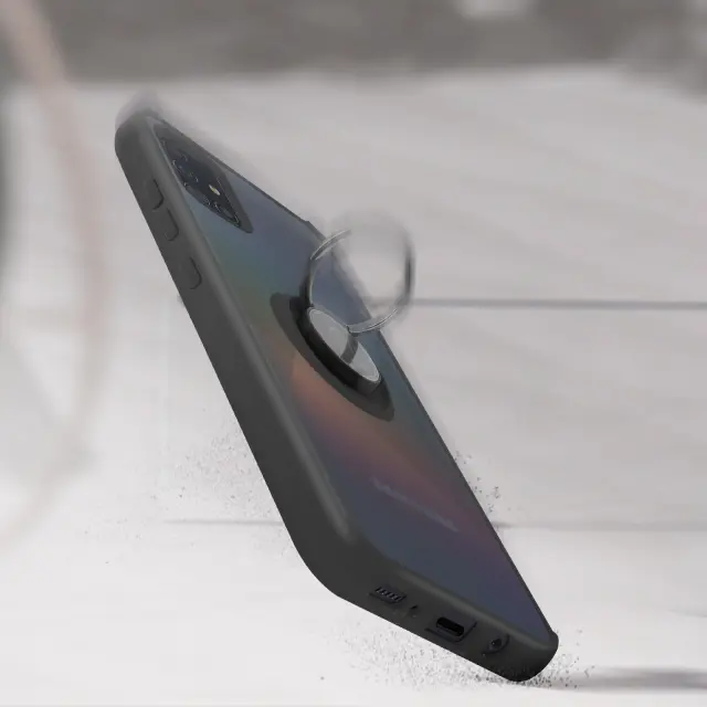 Ovitek za Samsung Galaxy A51 iz dveh materialov šciti vaš telefon pred udarci in praskami. Zašcita Samsung Galaxy A51 z zadrževalnim obrockom, ki se lahko uporablja kot podpora za video in združljiva z magnetno podporo (ni priložena). Mat zakljucek proti prstnim odtisom.