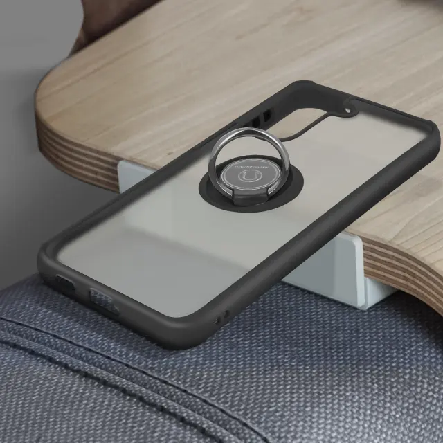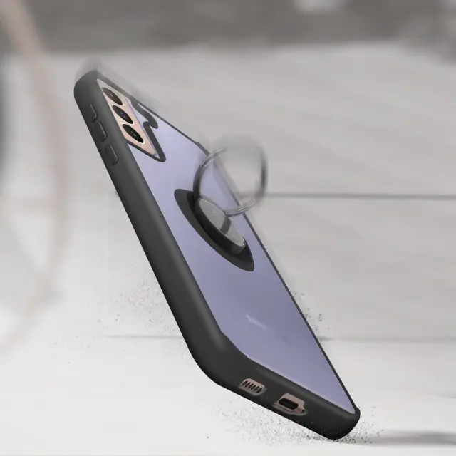 Zaščitni ovitek posebej zasnovan za Samsung Galaxy S21 Plus. Zadnji zadrževalni obroč za varno uporabo v vseh okoliščinah. Obroč spremenite v vodoravno ali navpično stojalo za uživanje v videoposnetkih in fotografijah. Ščiti vaš pametni telefon pred vsakodnevnimi udarci, padci in praskami.