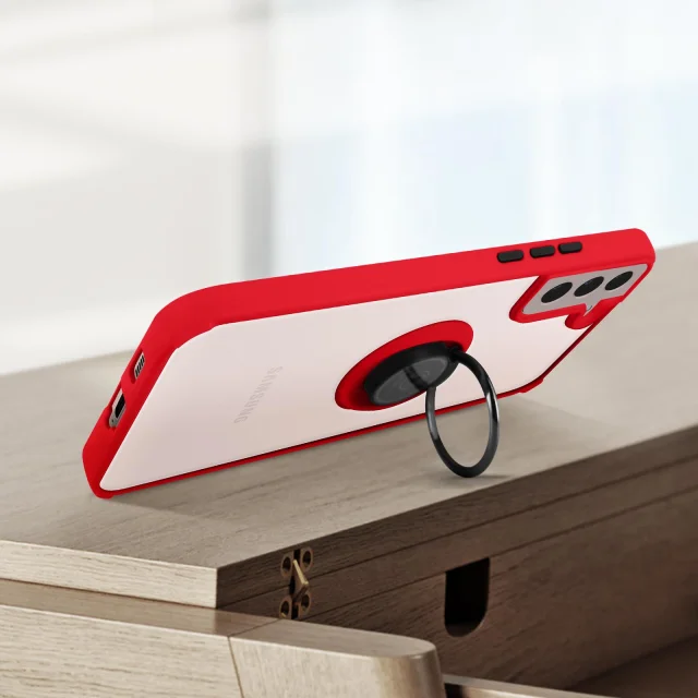 Ovitek za prstan za Samsung Galaxy S22 Plus - matirano hrbtišce proti prstnim odtisom, združljivo z magnetnim stojalom - rdeca