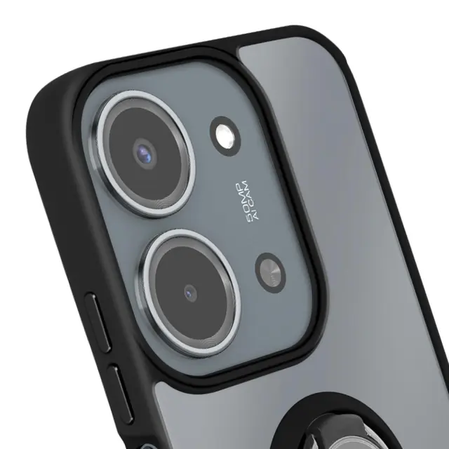 Ovitek za Redmi 15C z obročastim stojalom in magnetno pritrditvijo, Črna