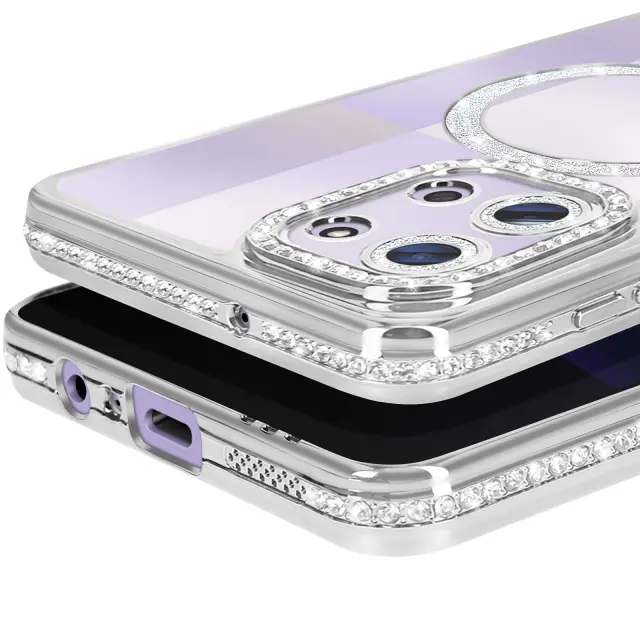 Prefinjen rob s kristalčki za elegantno, sijočo lupino. Združljivost s sistemom MagSafe zaradi vgrajenega magnetnega obroča. Zanesljiva zaščita pred praskami, udarci in manjšimi padci. Ojačan blok kamere za optimalno zaščito objektiva.