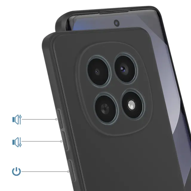 To črno ohišje za telefon Redmi Note 15 5G/4G je izdelano iz mat silikona proti praskam, da bo telefon ves dan videti urejen in čist.. Prilagodljiv material absorbira udarce in ščiti vogale pametnega telefona pred naključnimi udarci.. Dvignjeni robovi ščitijo zaslon in foto senzorje, ko telefon leži na mizi. Mehka prevleka izboljša oprijem in zmanjša tveganje zdrsa.