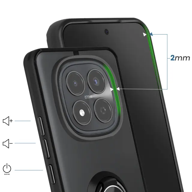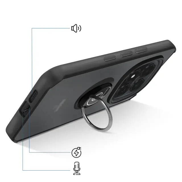 To ohišje za telefon Redmi Note 15 Pro 4G ima trdno hrbtno stran iz matiranega polikarbonata z mat površino, ki je odporna na praske in sledi.. Okvir TPU absorbira udarce na vogalih in trdno drži pametni telefon na mestu. Kovinski vrtljivi obroč se vrti za 360° in napravo stabilizira v vodoravnem položaju za gledanje ali klicanje.. Zaradi feromagnetnega vložka v obroču je ohišje združljivo z magnetnimi nosilci za avtomobile..