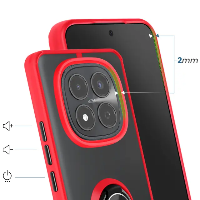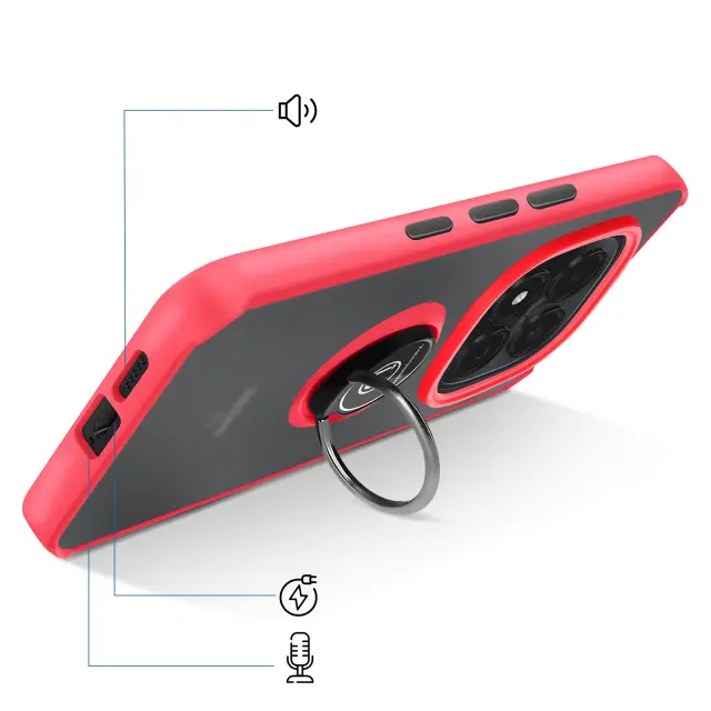 To ohišje za telefon Redmi Note 15 Pro 4G ima trdno hrbtno stran iz matiranega polikarbonata z mat površino, ki je odporna na praske in sledi.. Okvir TPU absorbira udarce na vogalih in trdno drži pametni telefon na mestu. Kovinski vrtljivi obroč se vrti za 360° in napravo stabilizira v vodoravnem položaju za gledanje ali klicanje.. Zaradi feromagnetnega vložka v obroču je ohišje združljivo z magnetnimi nosilci za avtomobile..