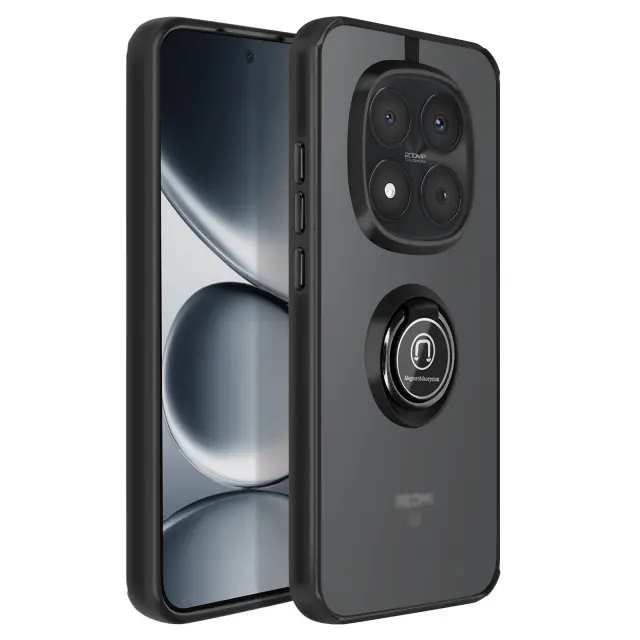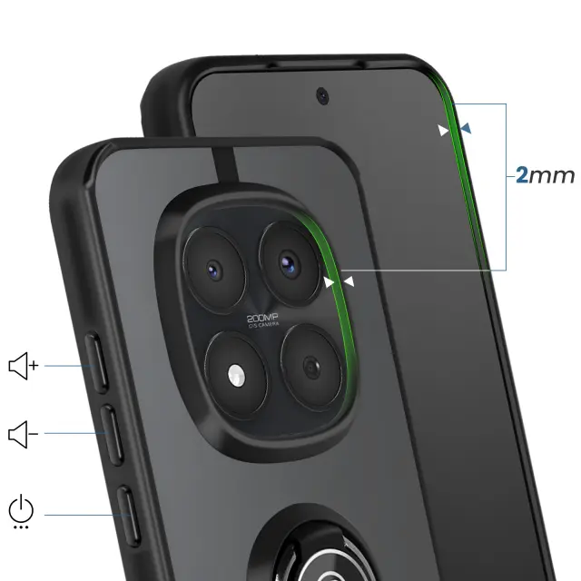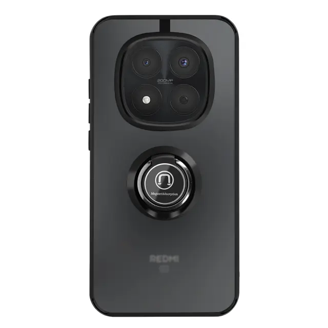 To ohišje za telefon Redmi Note 15 Pro 5G ima trdno hrbtno stran iz matiranega polikarbonata z mat površino, ki je odporna na praske in sledi.. Mehak črn okvir TPU po vsej dolžini obdaja vogale in pomaga absorbirati blage udarce v vsakdanjem življenju.. Kovinski vrtljivi obroč se vrti za 360° in napravo stabilizira v vodoravnem položaju za ogled vsebine ali opravljanje video klicev.. Zaradi feromagnetnega vložka v obroču je lupina združljiva z magnetnimi nosilci za avtomobile..