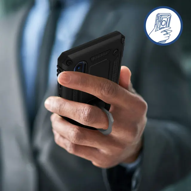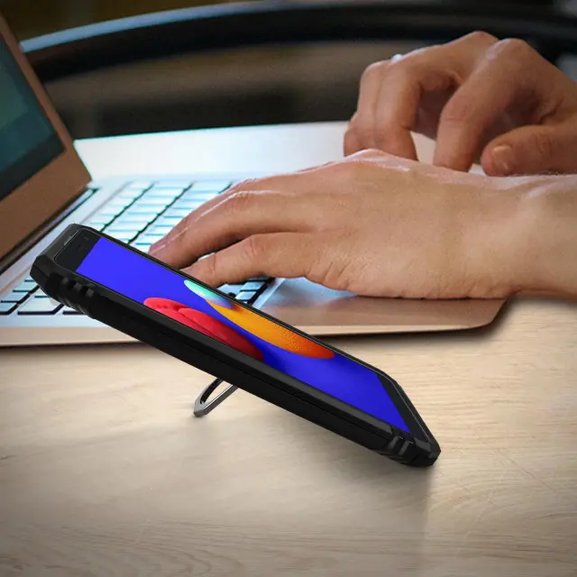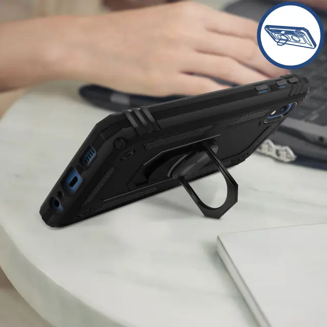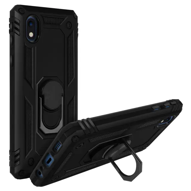 Ovitek za Samsung A01 Core, odporen na udarce, s kovinskim nosilnim obrocem - crn