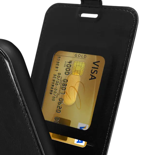 Crn ovitek za Samsung Galaxy A54 5G z izjemno prakticnim navpicnim zavihkom. Vkljucuje prostor za shranjevanje kartice in vaš mobilnik odene v eleganco. Vse funkcije ostanejo dostopne.