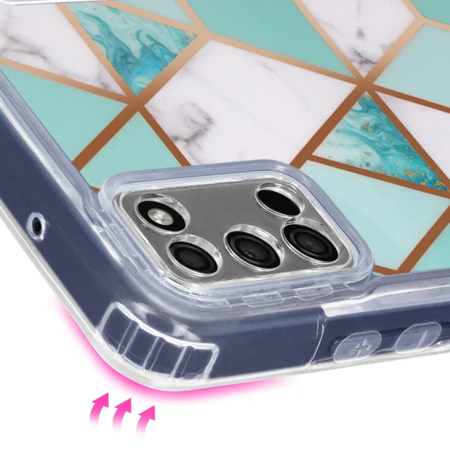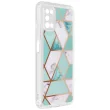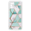 Ovitek za Samsung Galaxy A03s in Samsung Galaxy A02s, odporen proti udarcem, geometrijski vzorec, marmorna turkizna in bela