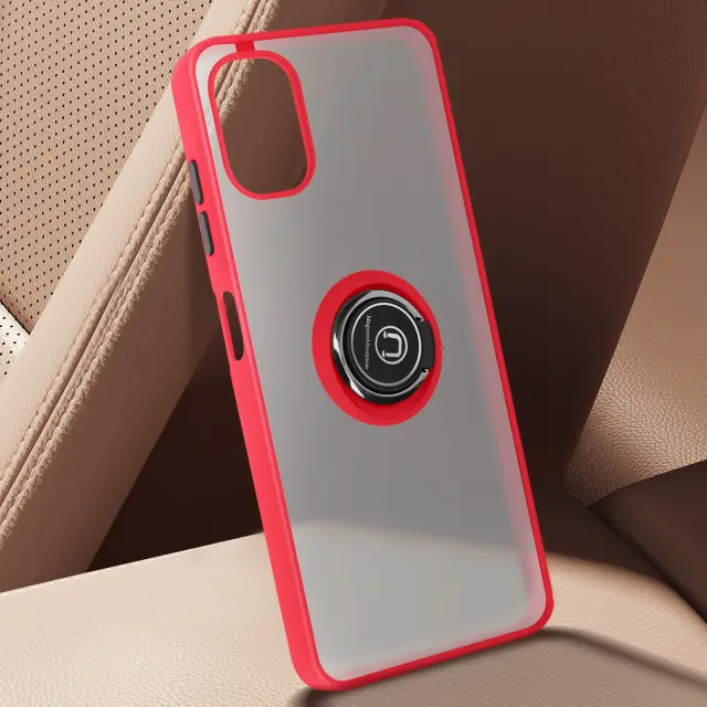 Ovitek za Samsung Galaxy A06 Kovinski obroč Video držalo, Rdeča