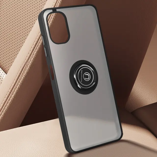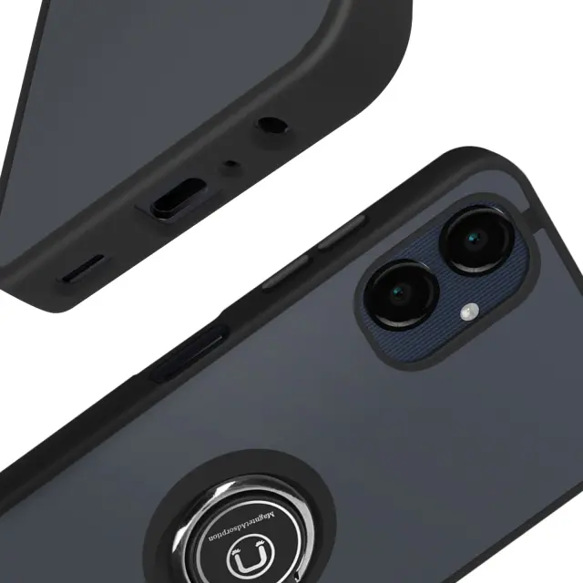 Ovitek za Samsung Galaxy A06 Kovinski obroč Video držalo, Črna