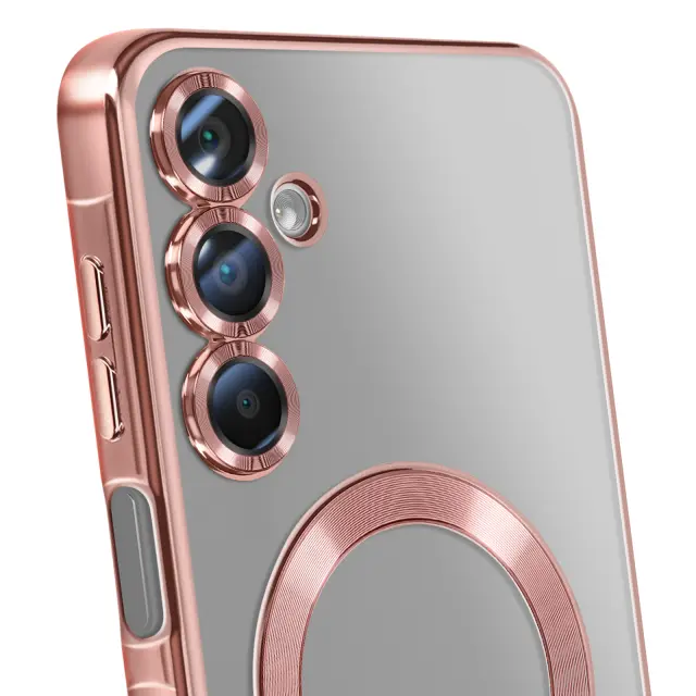 Ovitek za Samsung Galaxy A16, združljiv z MagSafe, s kromiranim robom, Šampanjec roza