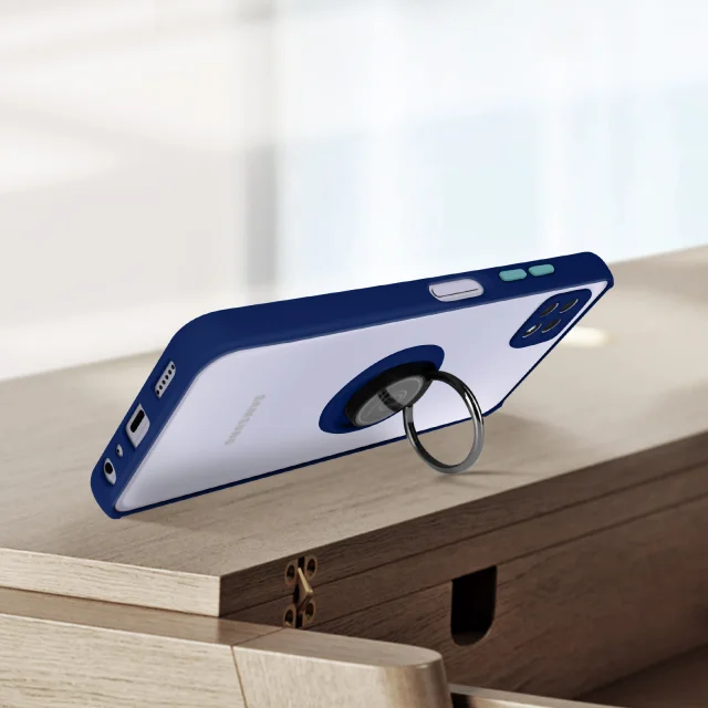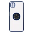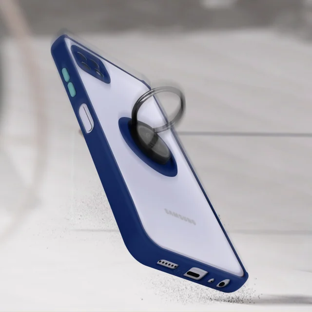 Ovitek za Samsung Galaxy A22 5G, odporen na udarce, z držalom za prstan in trdim zadnjim delom z zadimljenim ucinkom - moder