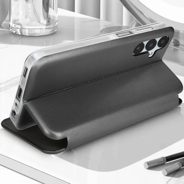 Ovitek za Samsung Galaxy A25 5G Flip Card Držalo za podporo Video, Srebrna
