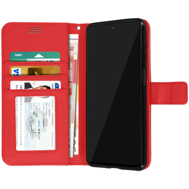 Ovitek za Samsung Galaxy M52 5G z magnetnim zavihkom, držalom za kartico in denarnico - rdec