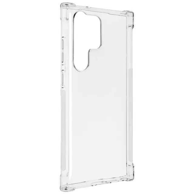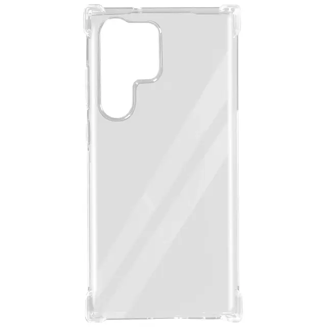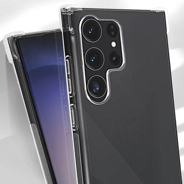 Zaščitna torbica, specifična za vaš Samsung Galaxy S23 Ultra. Zagotavlja učinkovito zaščito pred vsakodnevnimi udarci in praskami. Ojačani vogali za blaženje udarcev in padcev. Prozoren, ščiti in hkrati ohranja dizajn vašega pametnega telefona.