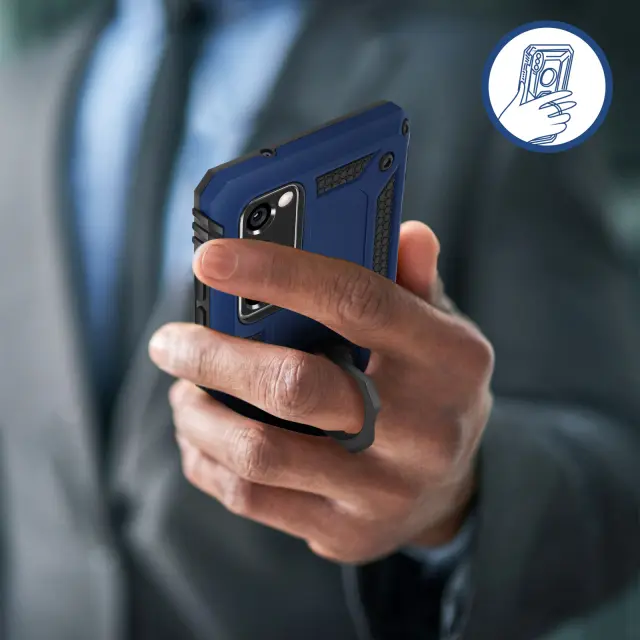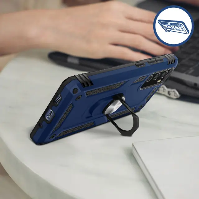 Ovitek za Samsung Galaxy S20 FE, odporen na udarce, s kovinskim nosilnim obrocem - polnocno modra
