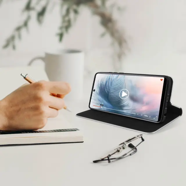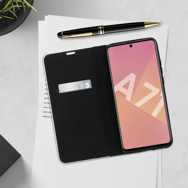 Zadnji ovitek, ki združuje dizajn z zaščito, izdelan posebej za Samsung Galaxy A71. Priročna loputa, ki se spremeni v stabilno vodoravno oporo za prostoročno gledanje. Diskreten vgrajen predal za kartice, da bodo vaše osnovne stvari pri roki. Popolna zaščita s prilagodljivo nosilno strukturo, odporno na udarce in praske.