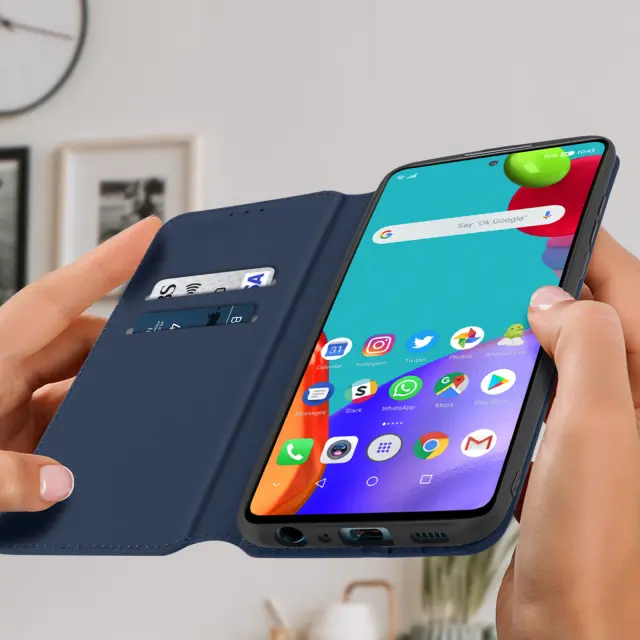 Samsung Galaxy A52 in A52s ovitek za popolno zašcito vašega mobilnega telefona pred udarci in praskami. Ta etui za Galaxy A52 in A52s ima prostor za shranjevanje kartic. Zašcita Samsung A52 in A52s z modularno loputo, ki služi kot video podpora.