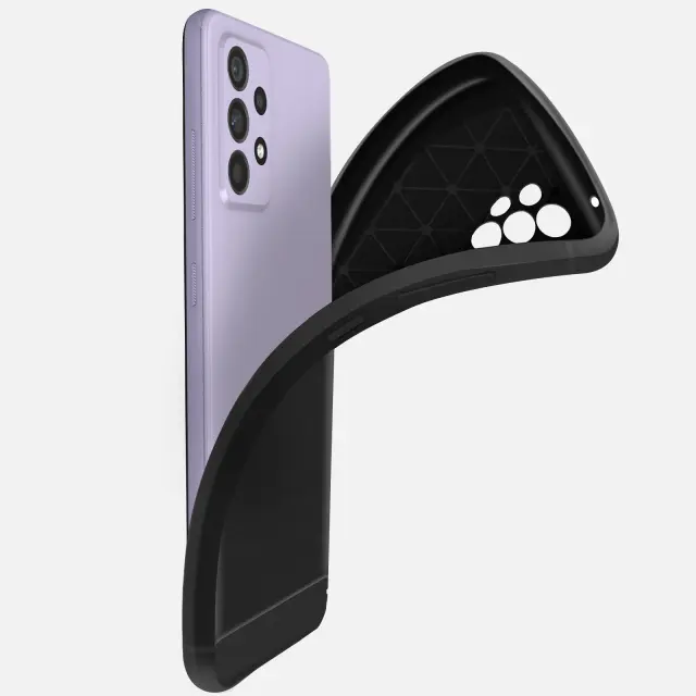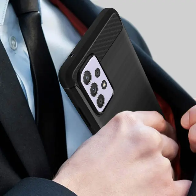 Fleksibilen in odporen silikonski ovitek za Samsung Galaxy A52. Trezen in sodoben dizajn zahvaljujoč 2 teksturama ohišja: ogljikovih vlaken in brušenega aluminija. Ojačane stranice za boljšo zaščito pred udarci in udarci. Zelo enostaven za namestitev, zahvaljujoč svoji fleksibilnosti.