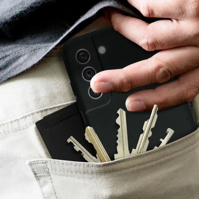 Posebej oblikovana zaščitna torbica za Samsung Galaxy S21 FE. Učinkovito ščiti vaš pametni telefon pred vsakodnevnimi udarci in praskami. Mehak na dotik: ponuja odličen oprijem in prijeten dotik. Prav tako se izogne prstnim odtisom zaradi matiranega zaključka.