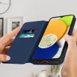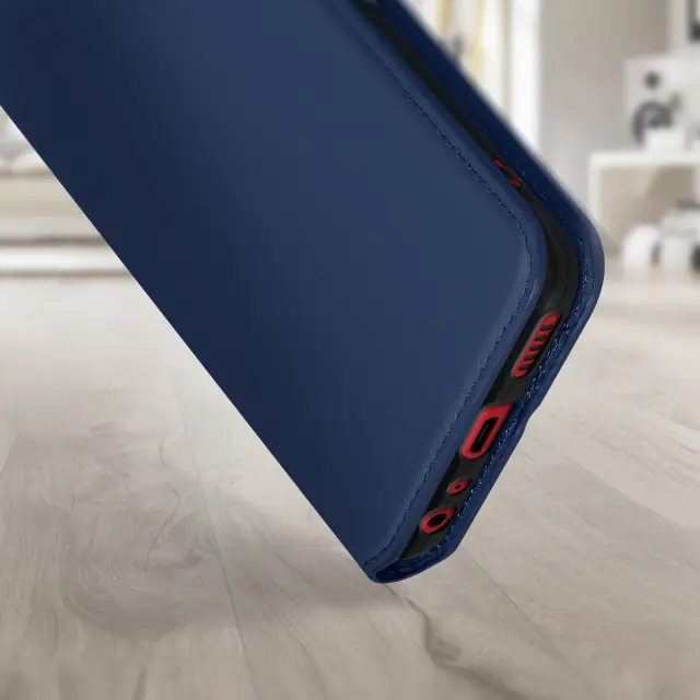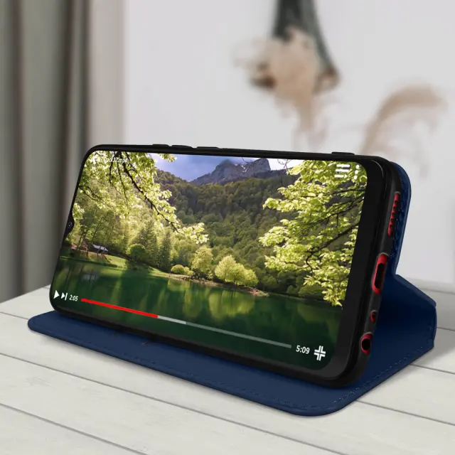 Etui posebej oblikovan za Samsung Galaxy A03 - temno moder. Popolna in učinkovita zaščita pred vsakodnevnimi padci in praskami. Ovitek iz ekološkega usnja z vidnimi šivi daje vašemu pametnemu telefonu eleganten pridih. Izbirni nosilec kartice v ohišju za optimalno uporabo.