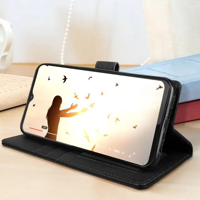 Preklopna torbica posebej zasnovana za Samsung Galaxy A13 4G. Oblečeno v umetno usnje za eleganten videz. Popolnoma ščiti pred vsakodnevnimi padci in praskami. Zavihek z magnetnim zapiranjem za dodatno varnost.
