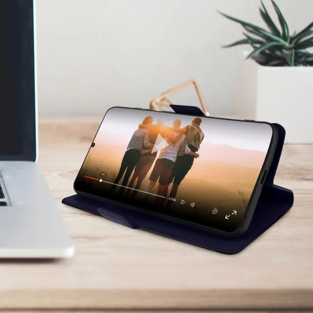Ovitek polnocno moder za Samsung Galaxy S20. Popolnoma šciti vaš mobilni telefon pred vsakodnevnimi udarci in praskami. Zašcita z zavihkom za držalo kartice in funkcijo video stojala. Ta etui ima dvojni magnetni jezicek.