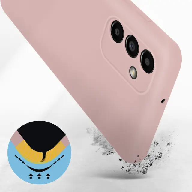 Ovitek za Samsung A13 5G in A04s roza. Ta poltrdi silikonski ovitek nudi ucinkovito zašcito pred udarci in praskami. Zahvaljujoc matiranemu zakljucku preprecuje prstne odtise. Popolnoma se ujema z obliko vaše naprave.