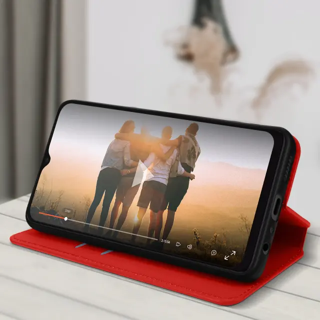 Ovitek za Samsung Galaxy A13 5G / A04s z magnetnim preklopom, držalom za kartico in video držalom - rdec