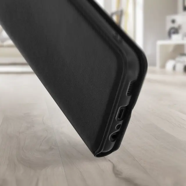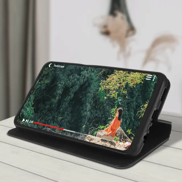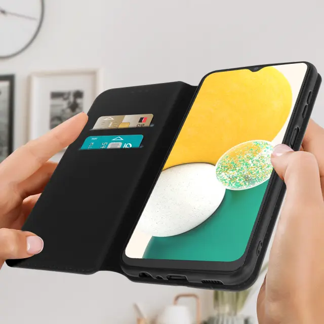 Ovitek za Samsung Galaxy A13 5G z magnetnim preklopom, držalom za kartico in video držalom - crn