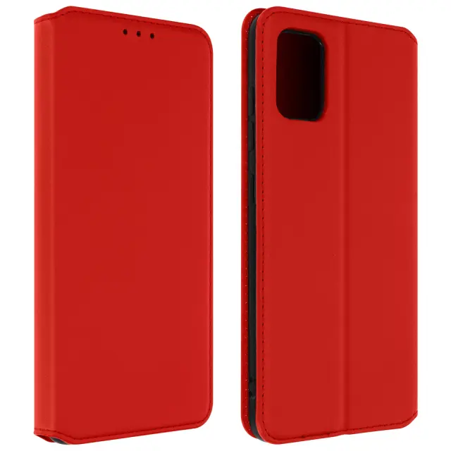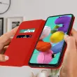 Rdeča torbica za telefon, zasnovana za vaš Samsung Galaxy A51. Zahvaljujoč tej učinkoviti zaščiti pred udarci in praskami opravite vsak dan brez skrbi. Izdelan iz elegantnega umetnega usnja za uspešen ponovni videz vašega telefona. Magnetni jeziček za zaprtje etuija za večjo varnost.
