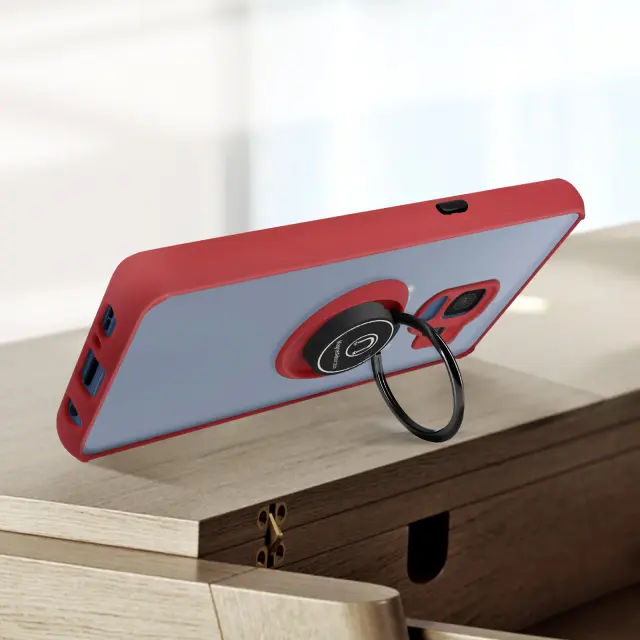 Zaščitna torbica s stojalom za prstan narejena za vaš Samsung Galaxy S9. Podpora hrbtnega obroča za varno uporabo v vsaki situaciji. Preoblikujte prstan v vodoravno ali navpično stojalo, da popolnoma uživate v svojem telefonu. Ščiti vaš telefon pred udarci, udarci in vsakodnevnimi praskami.