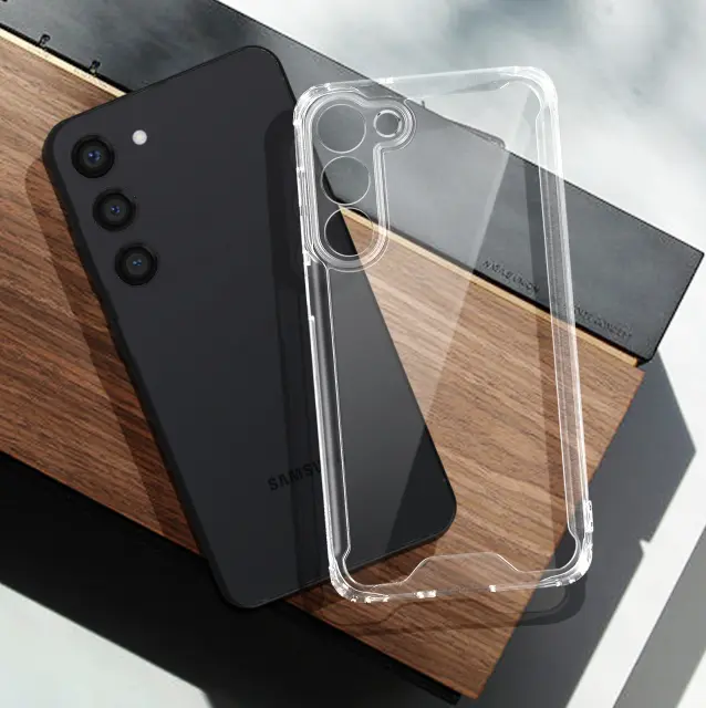Ta prozoren ovitek za Samsung Galaxy S23 Plus šciti vaš pametni telefon in hkrati prikazuje njegov dizajn. Sestavljen je iz dveh delov s togim zadnjim delom in konturo odbijaca, ki šciti mobilni telefon pred nesrecami. Dostopne funkcije.