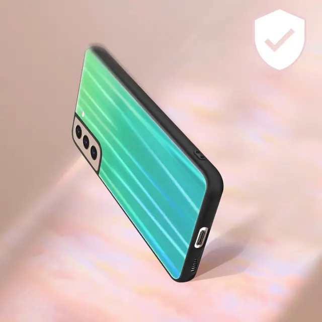 Ovitek po meri za Samsung Galaxy S21 Plus. Holografsko ohišje z večbarvnimi odsevi. Bi-material: Zaščita iz silikona in polikarbonata. Preoblikovani gumbi na pokrovu za bolj udobno uporabo.