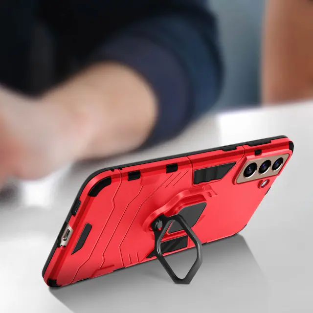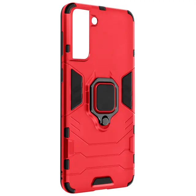 Robusten hibridni ovitek za Samsung Galaxy S21 Plus za zašcito vašega telefona. Samsung Galaxy S21 Plus zašcita z zadrževalnim obrocem, ki se lahko uporablja kot video nosilec. Njegov kovinski sistem omogoca združljivost z magnetno oporo.