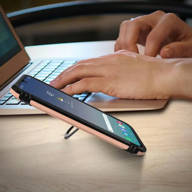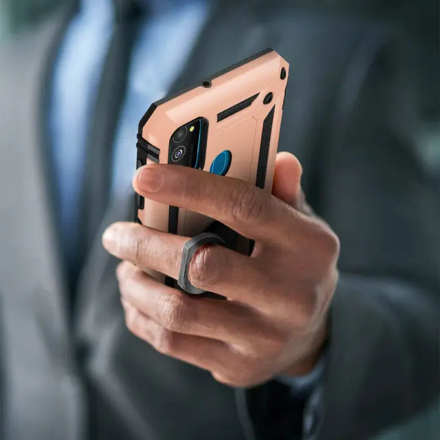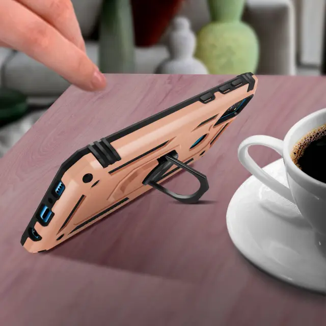 Ovitek za Samsung Galaxy M31 / M30s / M21, odporen na udarce, s kovinskim držalom za prstan - roza zlato