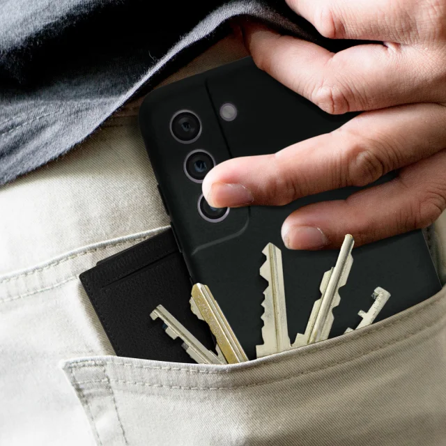 Ovitek za Samsung Galaxy S21 FE s poltrdim silikonskim premazom z mehkim zakljuckom na dotik - crn
