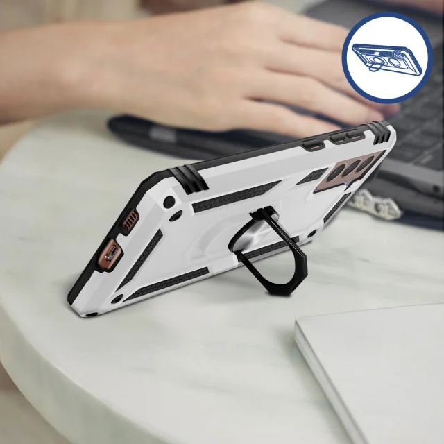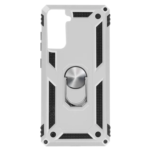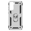 Ovitek za Samsung Galaxy S21 Plus, odporen na udarce, s kovinskim obrocem za stojalo - srebrn