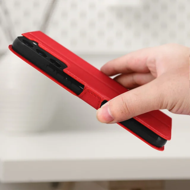 Ovitek za Samsung Galaxy S22 Plus, dvojno okence in dvojni magnetni zavihek - rdec