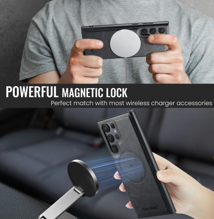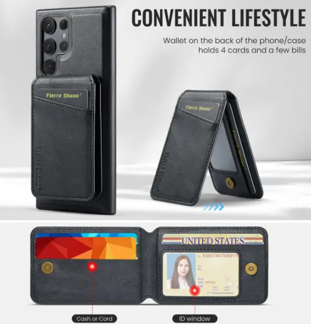 Ovitek za Samsung Galaxy S22 Ultra kovček, magnetni Magsafe pokrov telefona s PU usnjenim 2-v-1 držalom denarnice z režami za kartice - črna