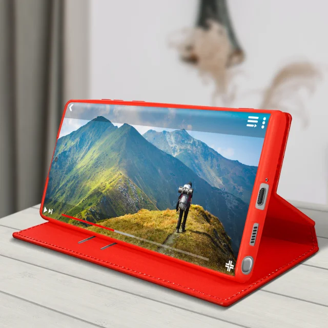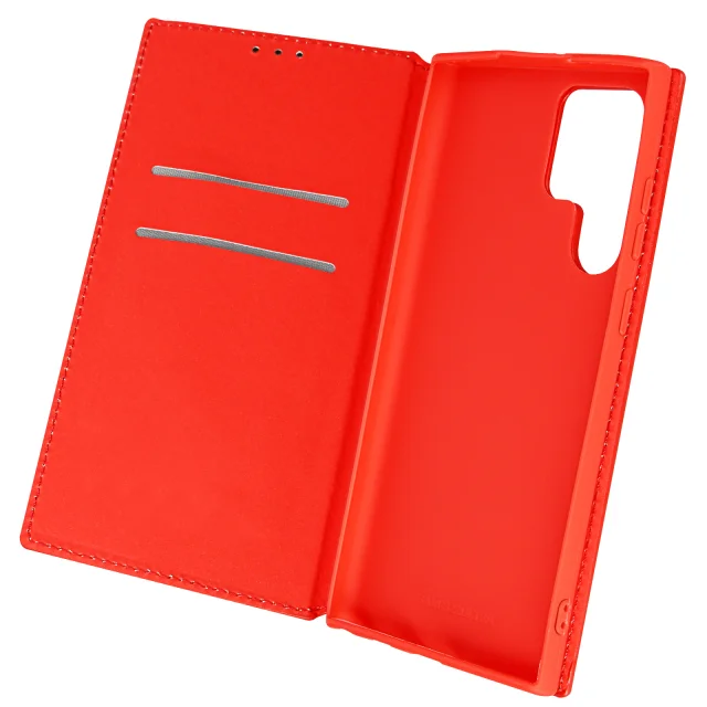 Ovitek za Samsung Galaxy S22 Ultra, magnetni preklop, držalo za kartice in stojalo za video iz umetnega usnja - rdeca