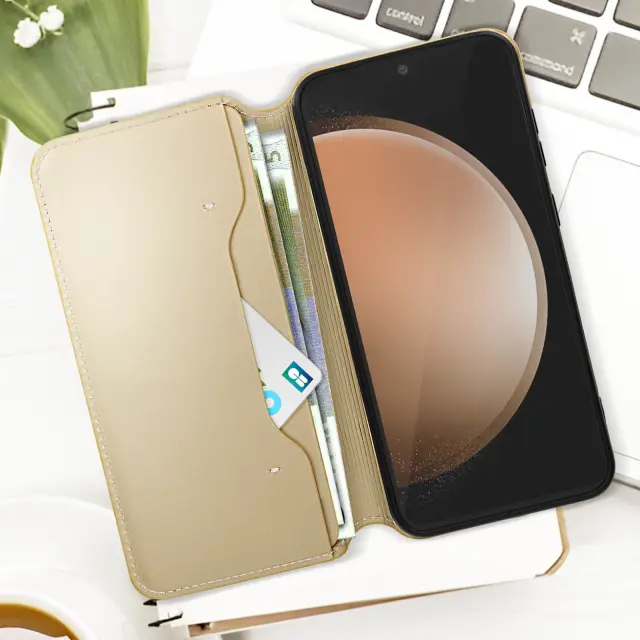Ovitek za Samsung Galaxy S23 FE Flip Double Pocket Support Funkcija, Zlata