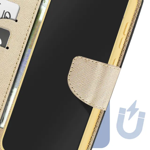 Ovitek za Samsung Galaxy S23 FE Flip Wallet Support Video, Črna / Zlata