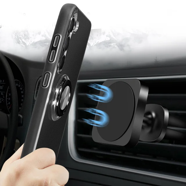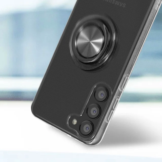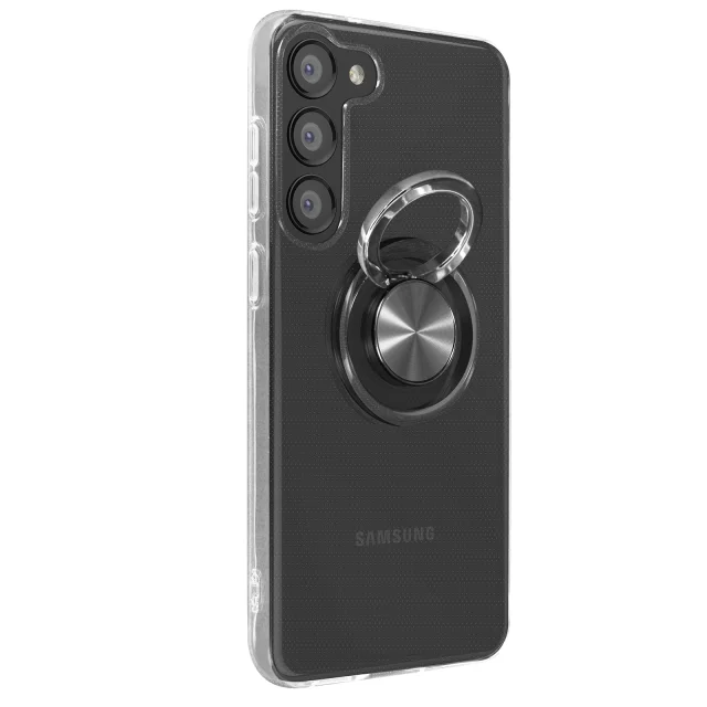 Ovitek za Samsung Galaxy S23 s kovinskim nosilnim obrocem, izdelan iz odpornega gel silikona - prozoren