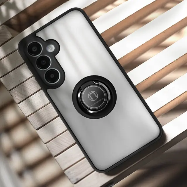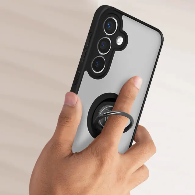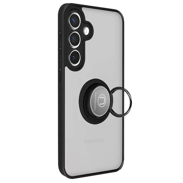 Ovitek za Samsung Galaxy S24 Plus kovinski obroč s funkcijo stojala, Črna
