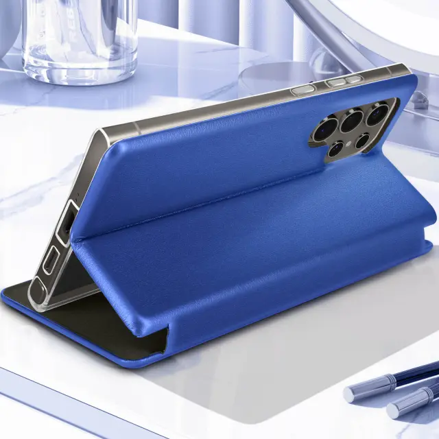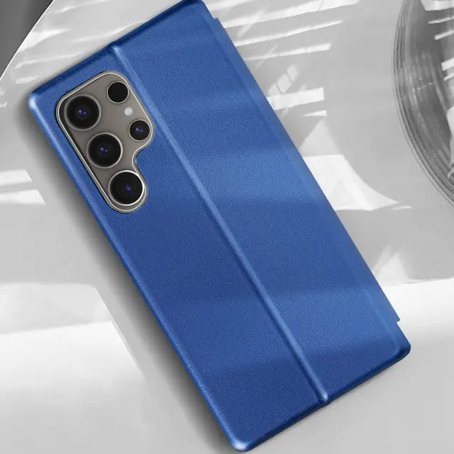 Ovitek za Samsung Galaxy S24 Ultra Flip Card Držalo za podporo Video, Modra