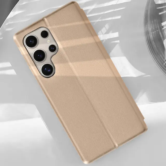 Ovitek za Samsung Galaxy S24 Ultra Flip Card Držalo za podporo Video, Zlata