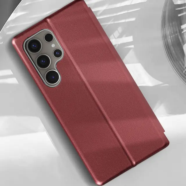 Ovitek za Samsung Galaxy S24 Ultra Flip Card Držalo za podporo Video, Bordeaux
